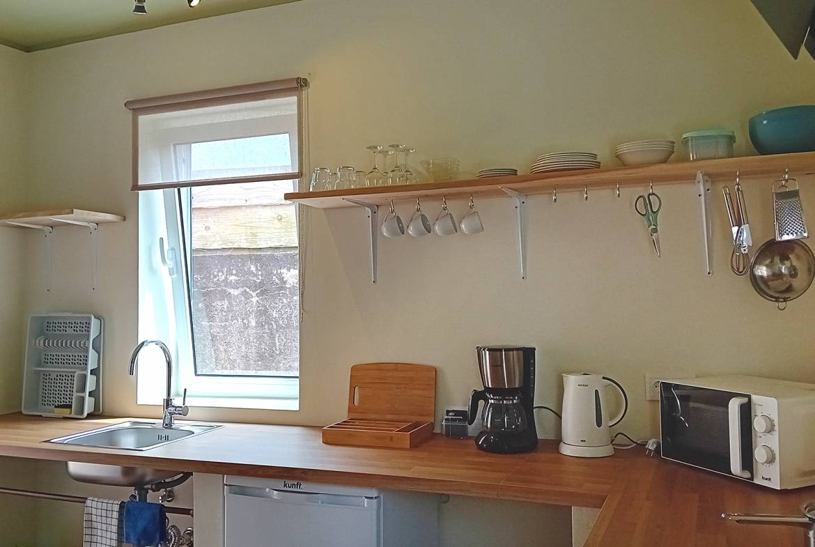 Das Cottage verfügt über eine voll ausgestattete Küche, eine Waschmaschine, ein Badezimmer mit Dusche, Toilette und Bidet, einen geräumigen Wohnbereich mit einem Kingsize-Bett, eine gemütliche Sitzecke und einen Smart-TV sowie ein zusätzliches Schlafzimmer, das für einen weiteren Gast geeignet ist.